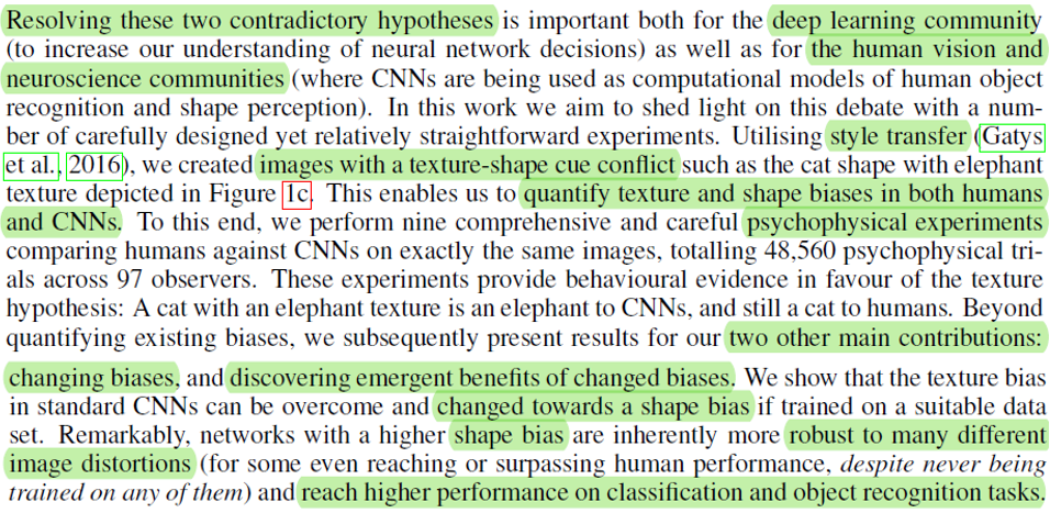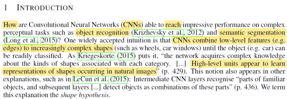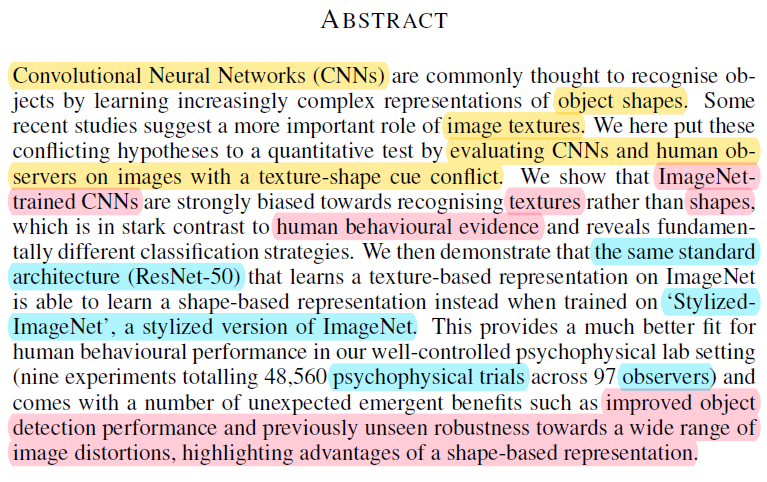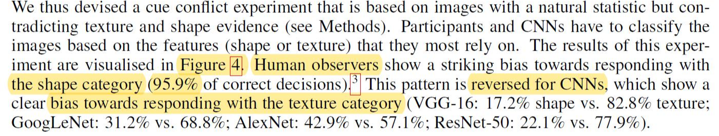"기존의 연구들은 CNN이 shape을 기반해서 classification을 하고 있었다"