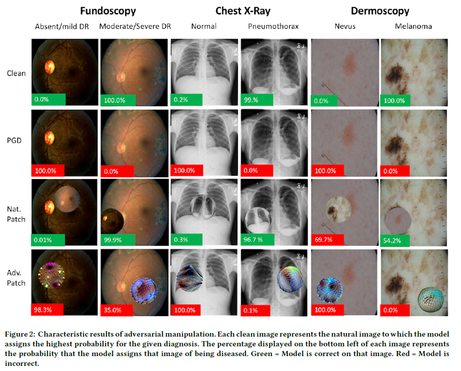 의료산업에서 딥러닝 모델을 사용한다고 했을 때, adversarial attack은 산업전반에 치명적인 타격을 줄 수 있습니다. 아래 두 논문을 기반으로 발생할 수 있는 문제들에 대해서 알아보도록 하겠습니다.