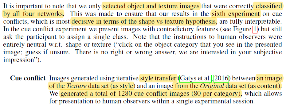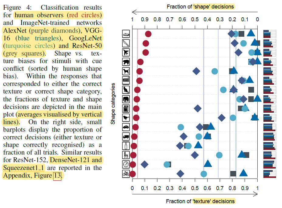 → Figure4의 결과: Texture, Cue conflict 이미지 분류 결과 (CNN VS 사람)