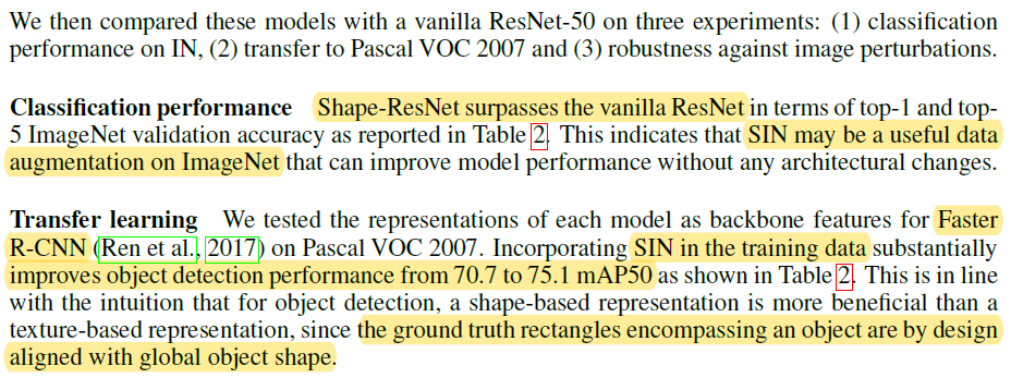 "실험을 통해 shape bias하게 CNN을 training 시킬 수 있었으며, shape bias가 가미된 CNN 모델은 classification, object recognition 성능에 긍정적인 영향을 미쳤다"