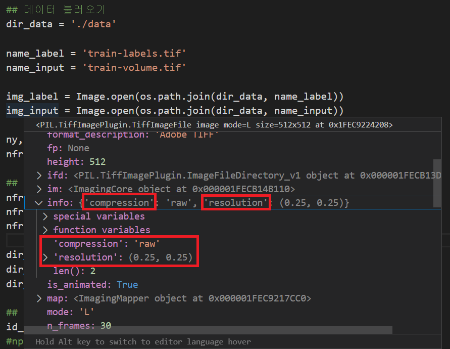만약 TIFF 파일을 image.open()으로 읽어들이면 tiff 이미지와 관련된 다양한 값들을 리턴받을 수 있는데, 이러한 값들에 대한 설명이 아래와 같이 나옵니다.