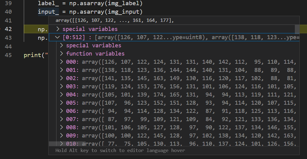이렇게 불러온 binary mode 이미지를 0~255 값으로, 즉 사람이 읽을 수 있는 값으로 변형 시키려면 numpy 패키지에서 제공해주는 함수를 이용하면 됩니다. 아래 코드에서는 numpy.asarray() 함수를 이용했네요.