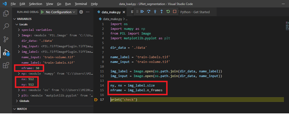 512×512×30에서 30이 의미하는 바는 특정 이미지 frame을 의미합니다. 예를 들어, (512, 512, 1) 값들은 첫 번째 이미지frame을 뜻하고, (512, 512, 2) 값들은 두 번 째 이미지 frame을 뜻합니다.