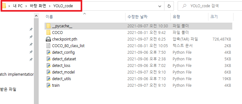 2. YOLOv3를 구현해 놓은 코드를 돌리면 __pycache__ 폴더가 생성됩니다.
