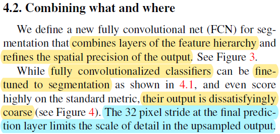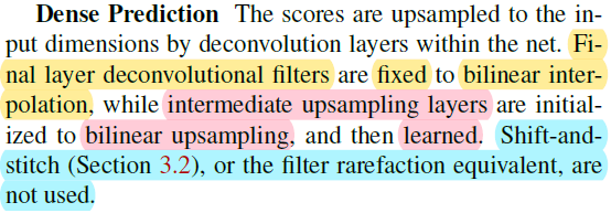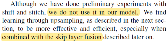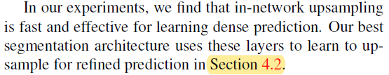 그리고 앞서 "section 3.2"에서 설명한 또 다른 upsampling 방식들은 FCN에 사용되지 않았다고 언급하고 있습니다.