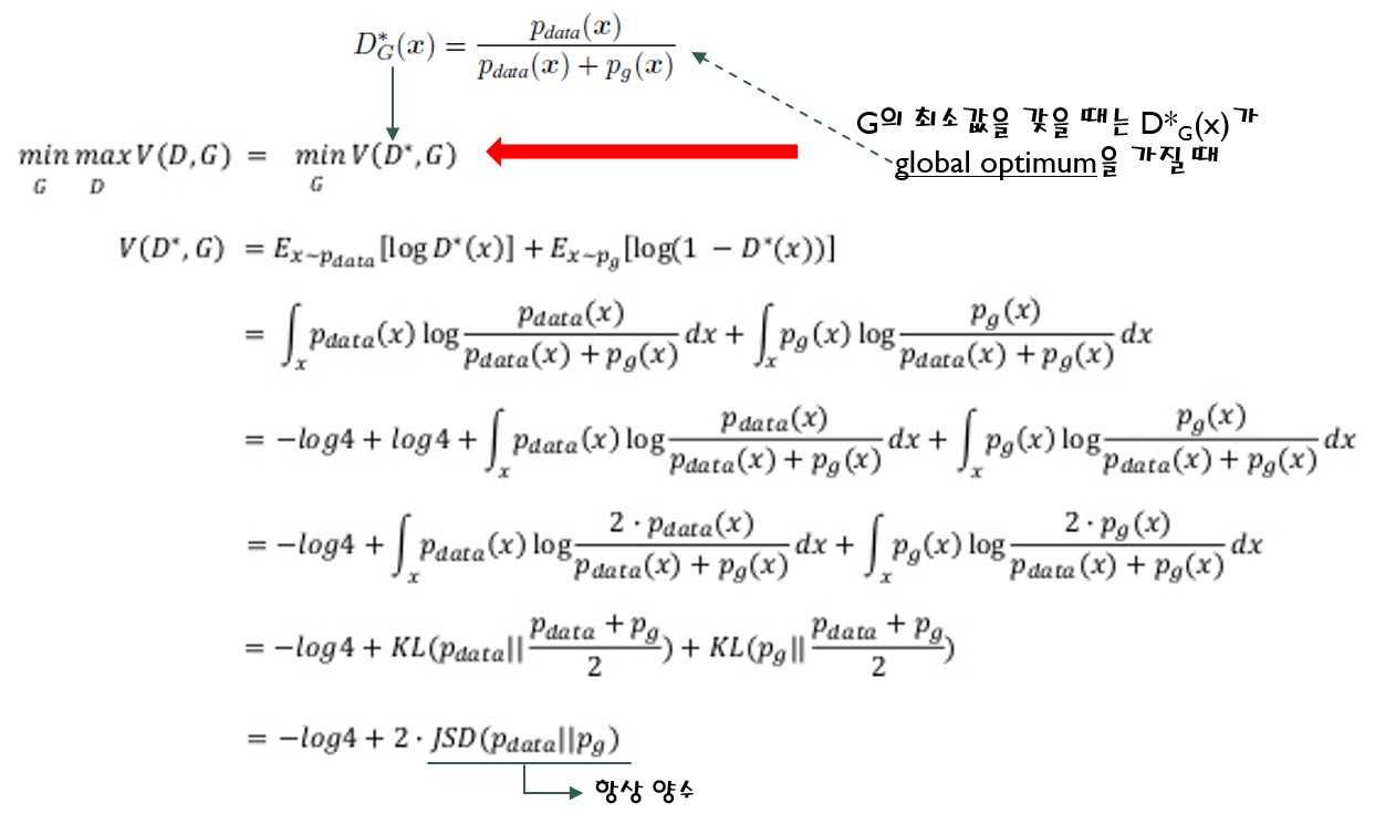 "그렇다면, GAN의 최종 loss는 어떠한 값을 갖어야 global optimum이라고 할 수 있을까요?"