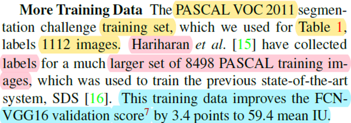 추가된 training dataset을 이용해 기존 FCN-VGG16의 validation 성능을 3.4% 향상시켰다고 하네요.
