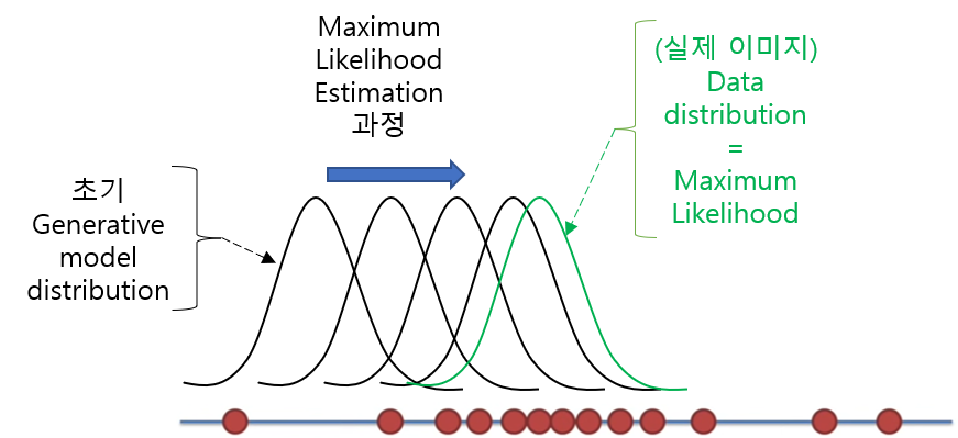 "즉 우리가 원하는 목표는 실선 3개를 모두 표현해줄 수 있는 확률 분포를 익히는 것이라고 볼 수 있습니다."