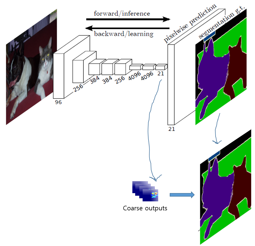 반면, deconvolutional layer 부분의 중간 layer들은 bilinear upsampling으로 초기화 되지만 학습이 가능하게 설정되었습니다.
