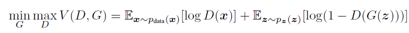 이 논문에서는 아래와 같은 방식으로 D와 G를 서로 학습함으로써 최적해(global optimum)을 찾을 수 있음을 보여줬습니다.