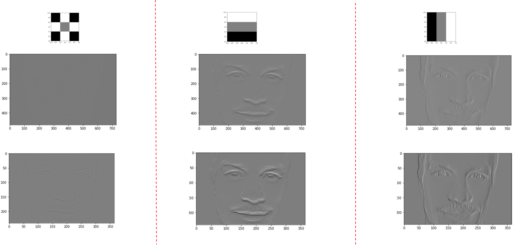 "즉 feature map을 통해서 어떤 feature들이 뽑힐지 conv filter (vertical filter)만 보고도 추측할 수 있는 것이죠."