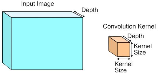 먼저, 앞서 언급한 하나의 convolution filter(=kernel)는 input image의 depth와 동일합니다.