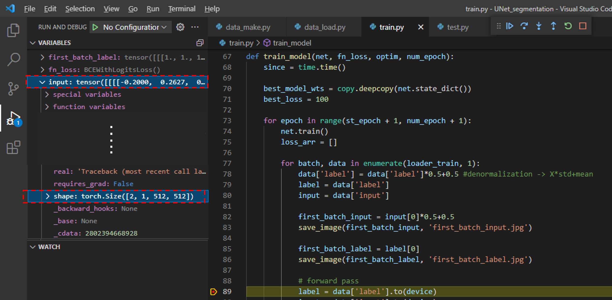 아래 빨간색 네모 박스는 log 관련 정보를 보여주는 곳인데, 학습 시 vs code에 기록되는 log 들을 그대로 볼 수 있습니다.