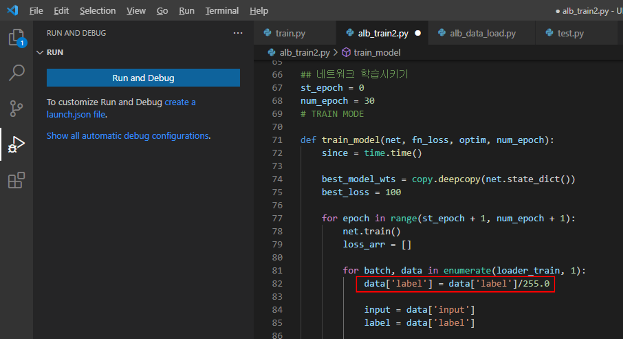 현재 "alb_train2.py"에 train 관련 코드가 들어가 있습니다.