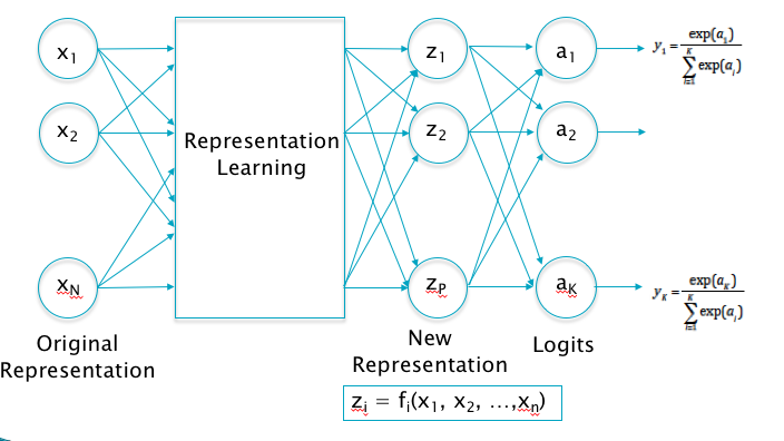 결국 DNN, CNN 모두 최종 task의 유형에 따라 'new representation'에 해당하는 new feature(<--> input feature)를 출력하게 됩니다. 이러한 'new representation'을 뽑게 학습하는 것을 representation learning이라고 부르는 것이죠.