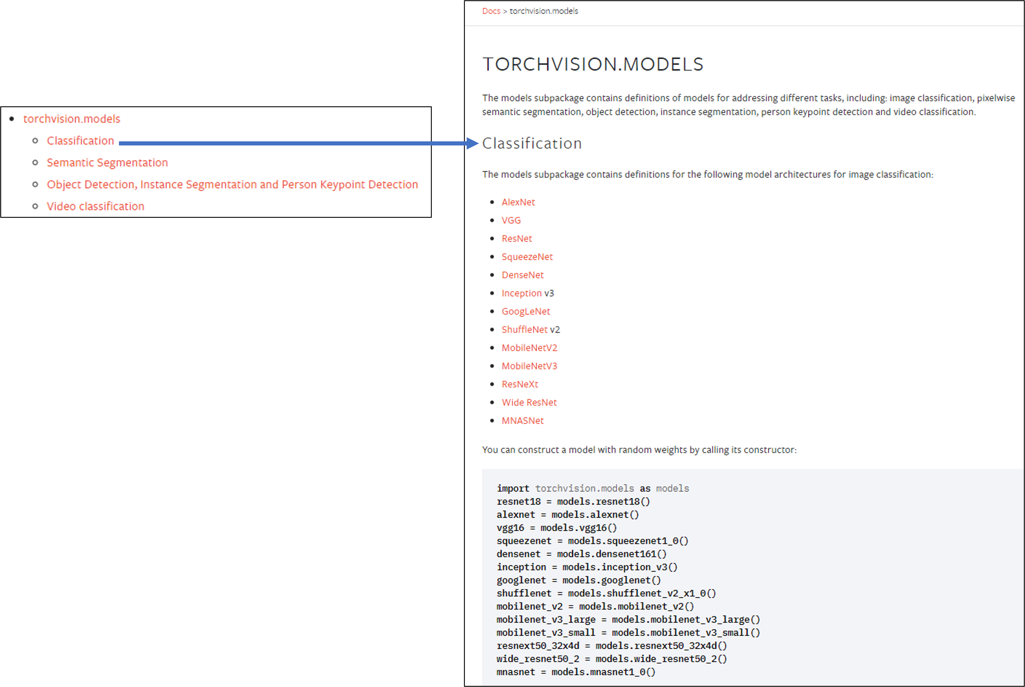 torchvision.models 패키지는 다양한 이미지 task 분야 (ex: classification, dobject detection, segmentation, etc)의 pre-trained 모델을 제공해주고 있습니다.