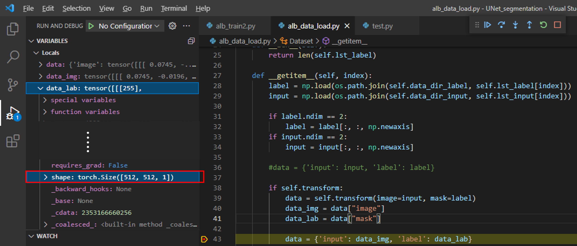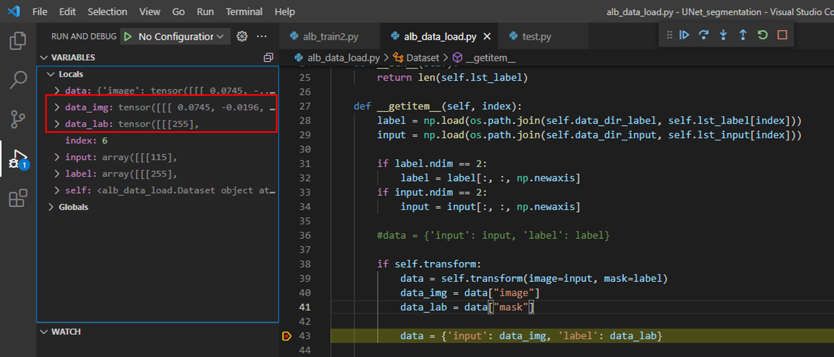 먼저, 아래 "그림10"처럼 breakpoint를 걸어주고 "alb_train2.py"를 실행시켜봅시다.
