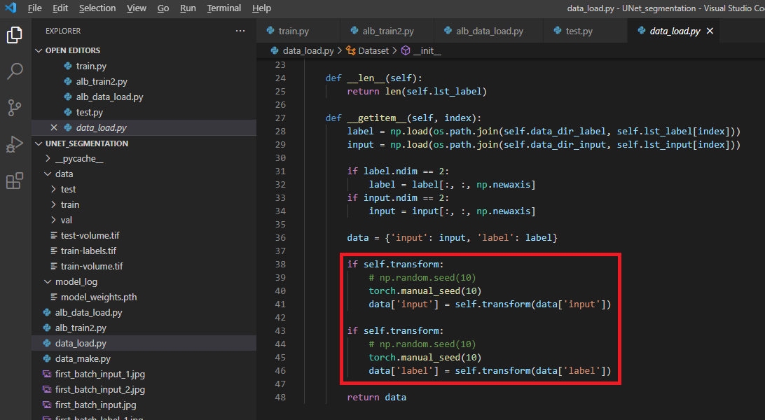 그래서 training image, training label을 동시에 넘겨줄 수 있기 때문에 따로 seed를 고정시켜줄 필요가 없습니다. (실제로 data_img, data_lab 데이터를 10번 정도 이미지화해서 살펴봐도 augmentation이 동일하게(일치하게) 적용되는 것을 확인할 수 있었습니다)
