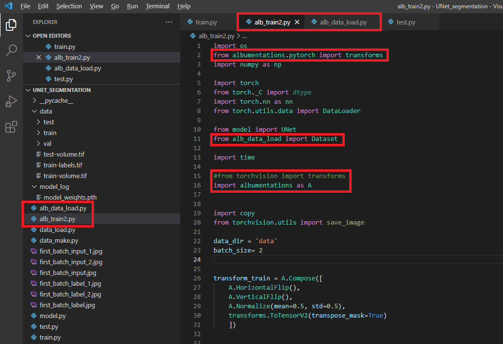 먼저, 필자는 "alb_data_load.py, alb_train2.py"와 같이 파이썬 파일을 만들었습니다.