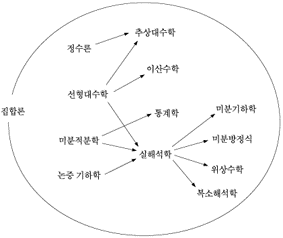 또한, 칸토어(Georg Ferdinand Ludwig Philipp Cantor; 1845)는 무한이라는 개념을 집합의 관점에서 정리하였고, 데데킨트(Julius Wilhelm Richard Dedekind; 1831)는 실수체계를 엄밀하게 정리함으로써 무한이라는 개념을 체계화시켰습니다. 결국 해석학을 통해 대수학, 기하학에 대한 개념을 엄밀하게 하려는 시도까지 하게 되죠.