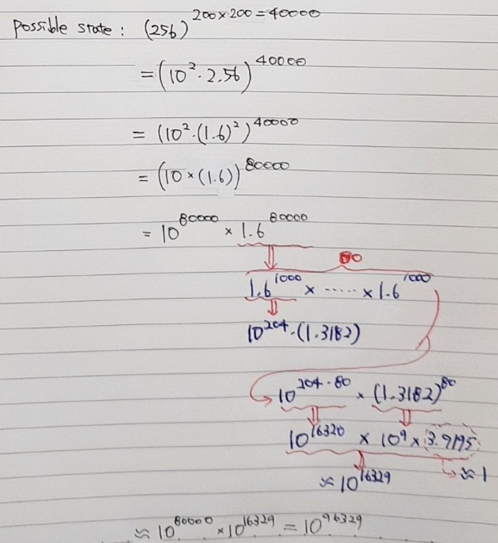 "그렇다면, 200×200 gray scale 이미지를 표현할 수 있는 모든 경우의 수는 어떻게 될까요?"