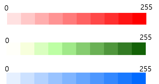 답부터 말씀드리면 "색을 표현하기 위해서는 3차원이 필요"합니다. 현실세계에서는 3차원 (R,G,B) 값을 다양하게 조합하여 색상을 표현할 수 있죠. 그리고, 이렇게 표현된 공간을 "색 공간 (color space)"라고 부릅니다.
