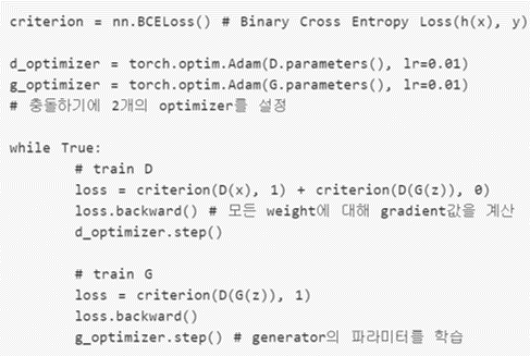 위의 알고리즘을 실제로 코딩할 때 아래와 같이 구현할 수 있습니다. (D학습시 따로 k step을 두진 않은 것 같네요)
