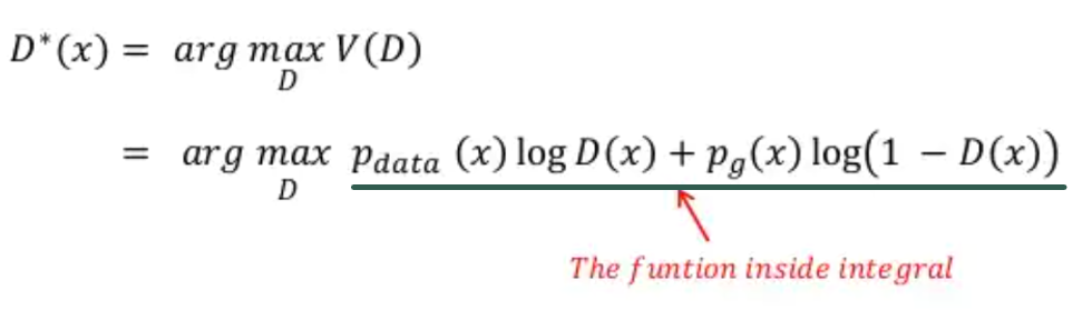 \(D^{*}(x)=\frac{P_{data}(x)}{P_{data}(x)+P_{g}(x)}\)