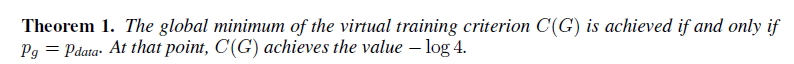 "다시 말해, MinMax 구조의 함수에서 \(P_{data}=P_{g}\)일 때, global optimum을 갖는다고 할 수 있습니다.”