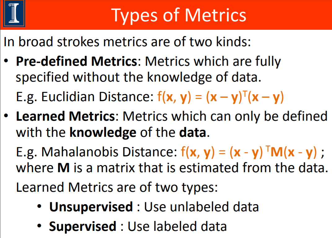 거리를 측정하는 metric 방식에도 크게 두 가지 종류가 있습니다.