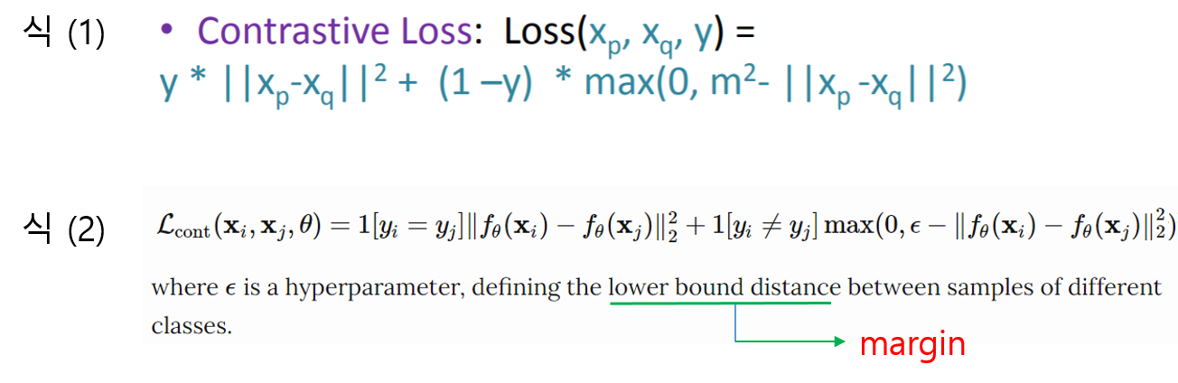 위에서 언급한 두 수식을 결합한 loss를 contrastive loss라고 합니다.