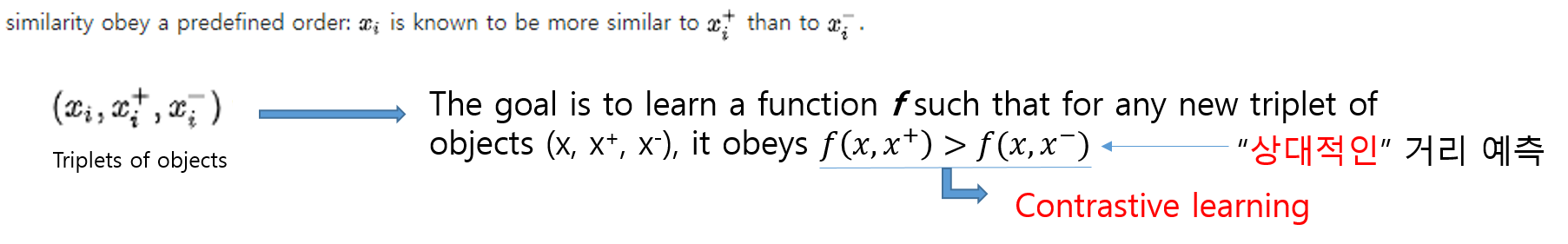 - 앞선 두 가지 방식과 다른 부분은 "세 가지 입력 데이터 (triplets of objects)"를 필요로 한다는 점입니다.