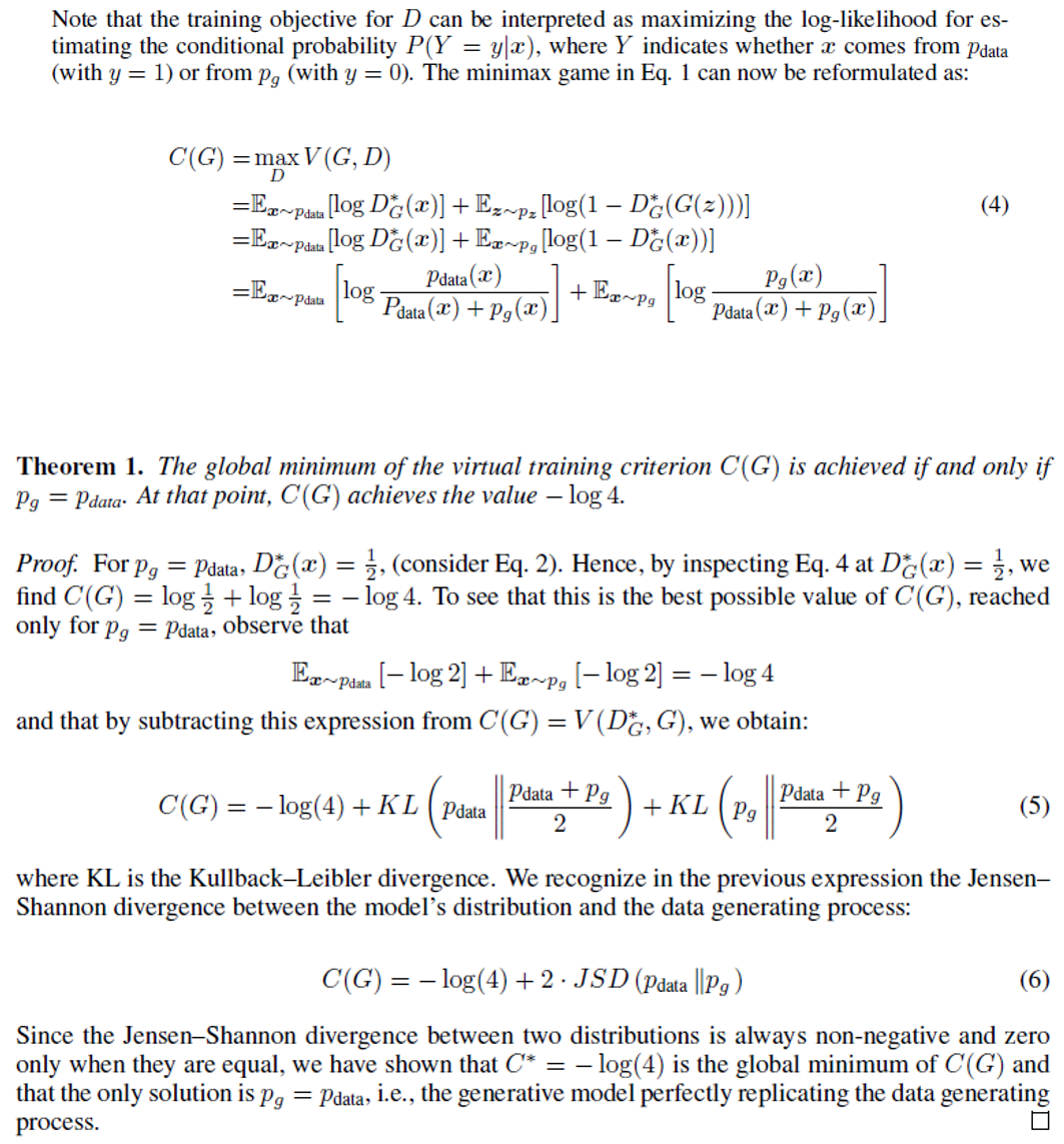 "그렇다면, GAN의 최종 loss는 어떠한 값을 갖어야 global optimum이라고 할 수 있을까요?"