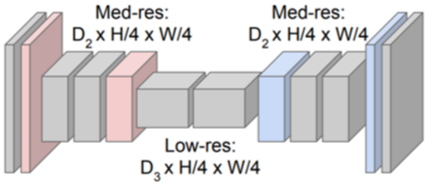 Deconvolutional layer 부분에서 마지막 layer에 해당하는 부분은 bilinear interpolation 방식을 이용하는 filter 값들이 고정된 값으로 지정됩니다.