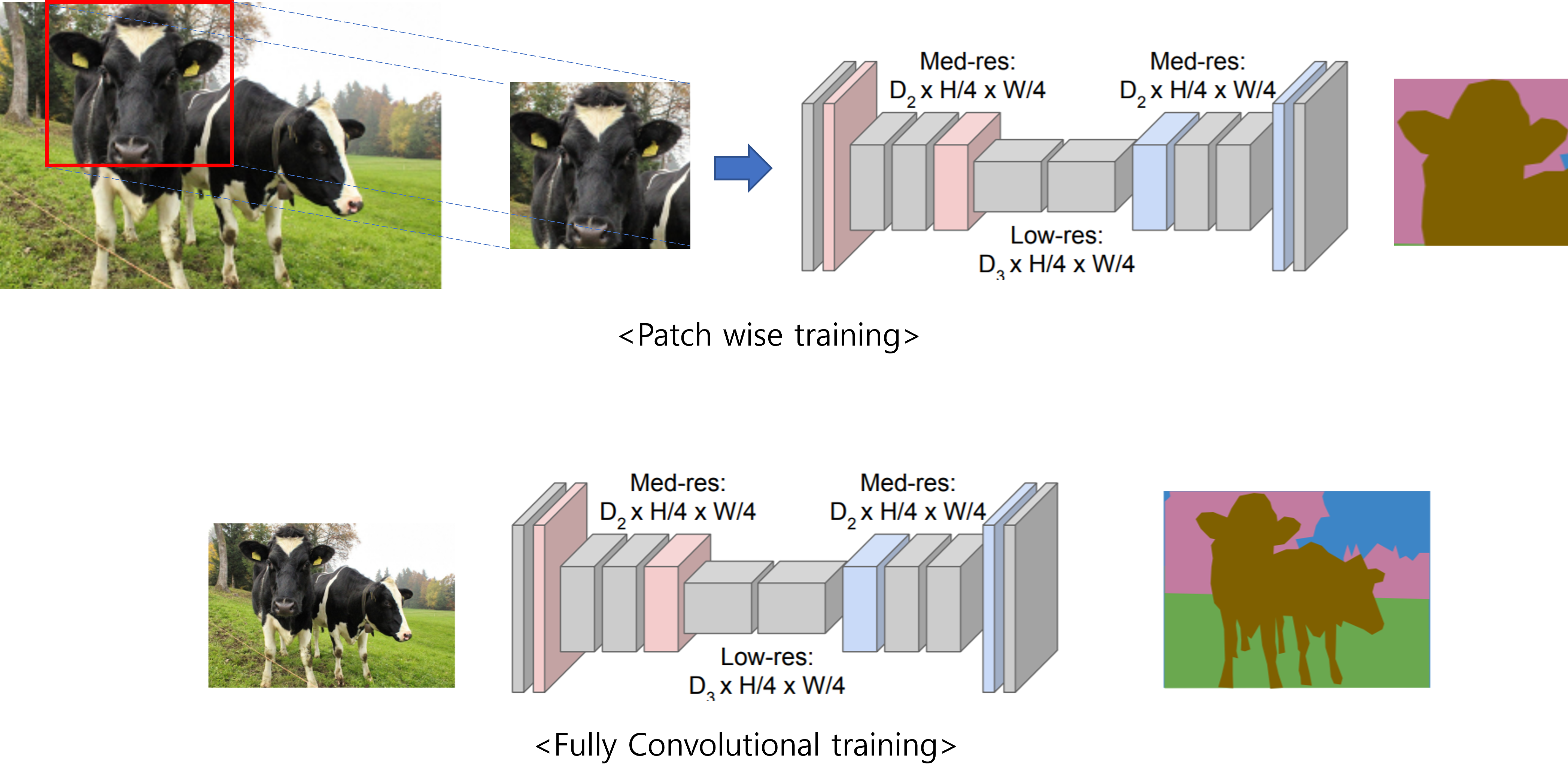 Scratch training: FCN의 downsampling 하는 부분이 보통 pre-trained CNN 모델을 사용합니다. 만약 segmentation을 scratch training 하려면 downsampling 부분(=pre-trained CNN)도 scratch training이 되어야 합니다. 그러므로 시간상 비효율적이라고 언급하고 있네요 (사실 시간적인 부분도 그렇고 pre-training 한 후, transfer learning을 통해 학습한 filter들이 scratch training을 통해 학습된 filter들 보다 더 다양할 것 같아 성능면에서도 transfer learning을 적용하는게 더 좋을 것 같다는게 제 개인적인 생각입니다).