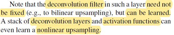 반면, deconvolutional layer 부분의 중간 layer들은 bilinear upsampling으로 초기화 되지만 학습이 가능하게 설정되었습니다.