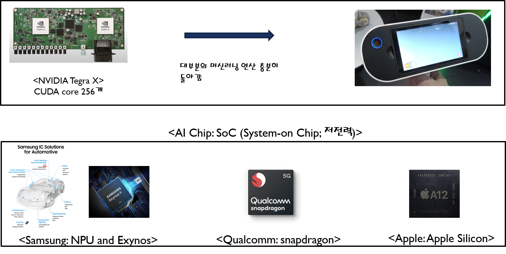 Smart phone에서는GPU, CPU통합 개념인AP(ApplicationProcessor)라는on-device가 있다.