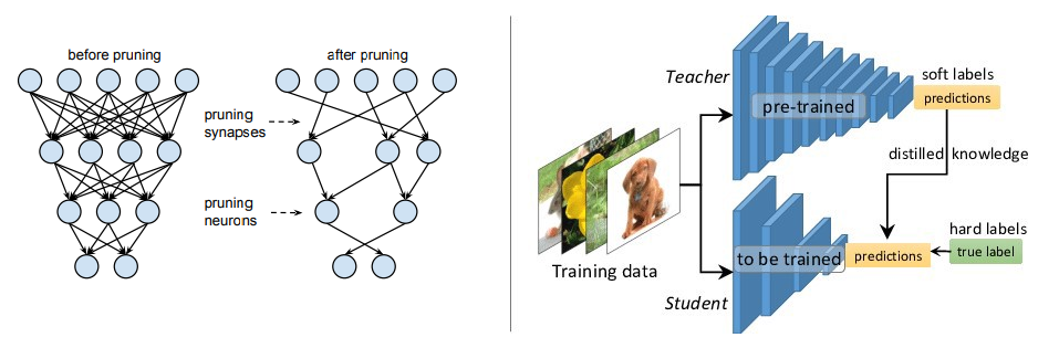 그래서 몇 년전부터 이러한 AI 모델을 압축시키는 여러 기술들 ("Knowledge distillation, Pruning, etc.) 이 출현하고 있었죠.