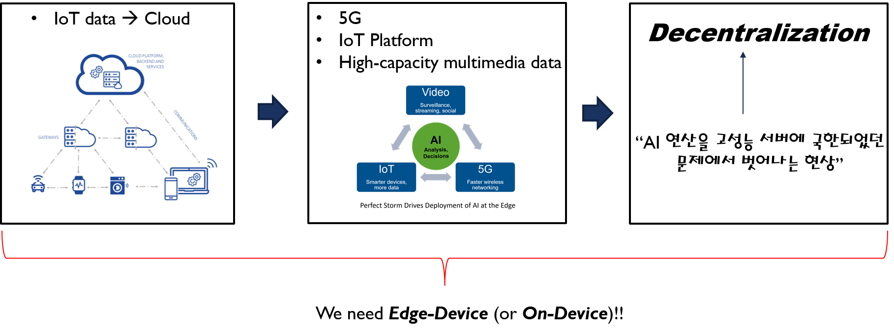 예를들어, 아이의 이상행동을 감지하거나, 자율주행자동차의 경우 기기 자체에서 AI모델을 training(학습)하고 inference(추론)할 수 있게 해주어야 합니다.