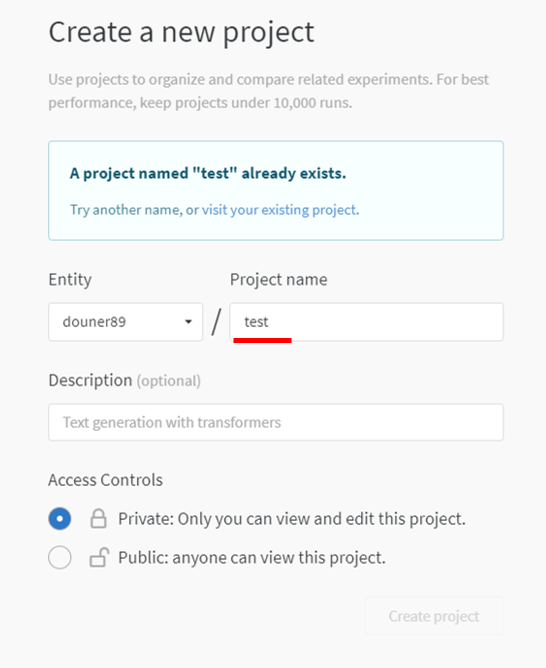 그럼 WandB(=W&B) project를 생성해보겠습니다.