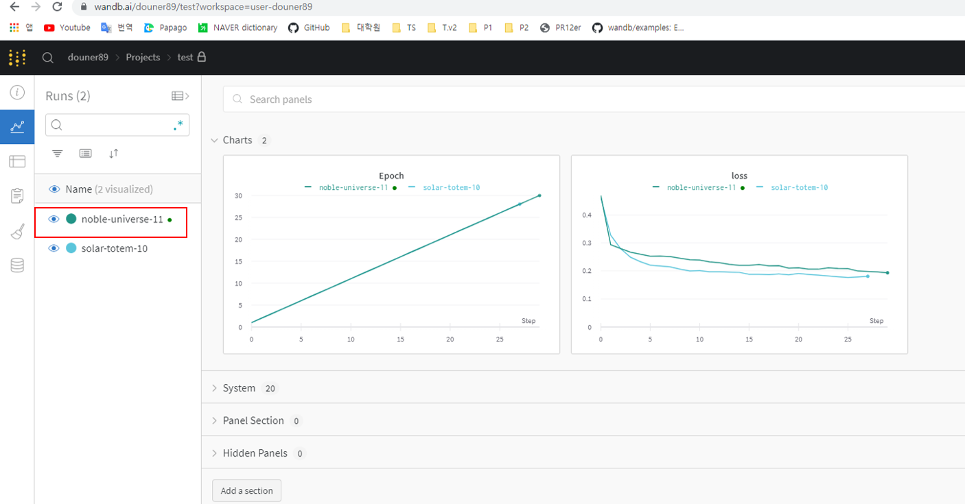 그래야 "Weight and Biases" 웹 사이트와 연동하여 visualization 결과들을 살펴볼 수 있기 때문이죠.