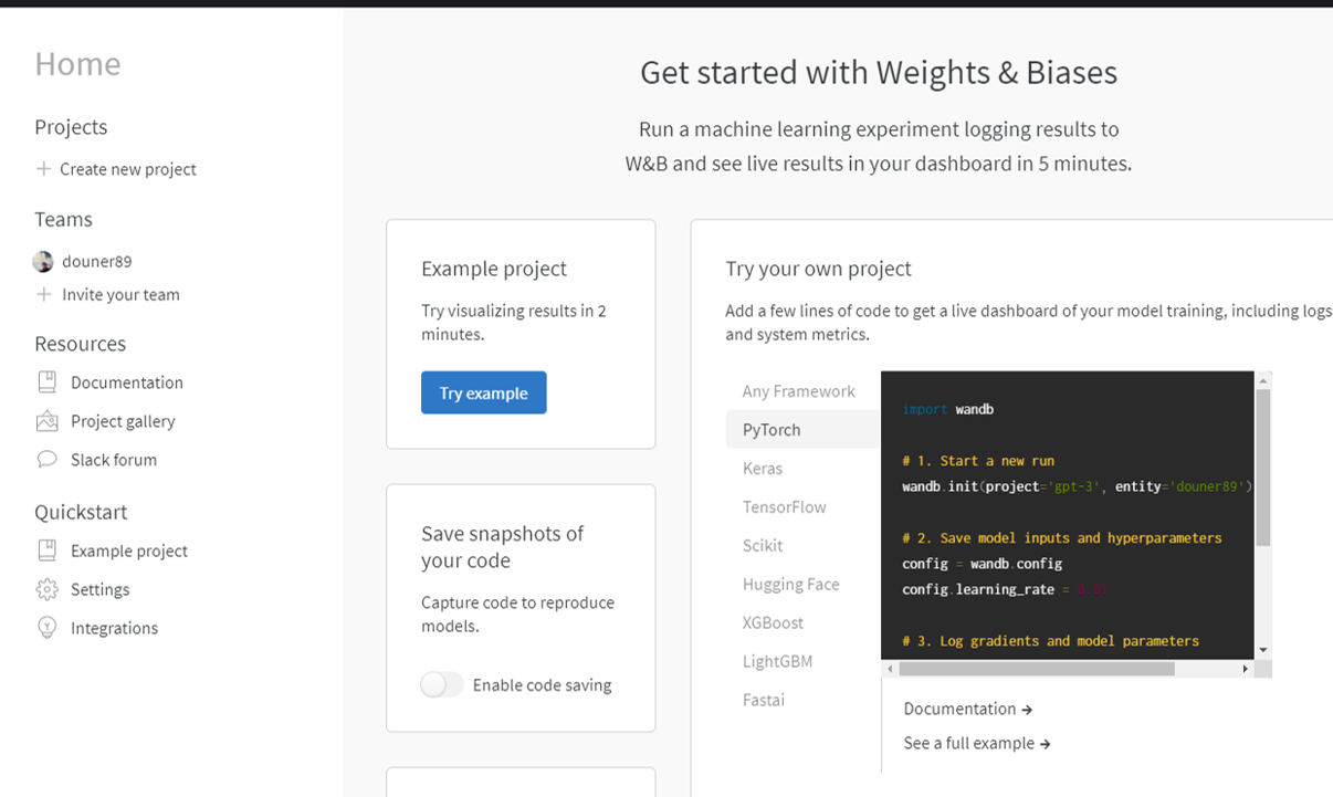 다시 weight and biases 사이트 화면으로 돌아오겠습니다.
