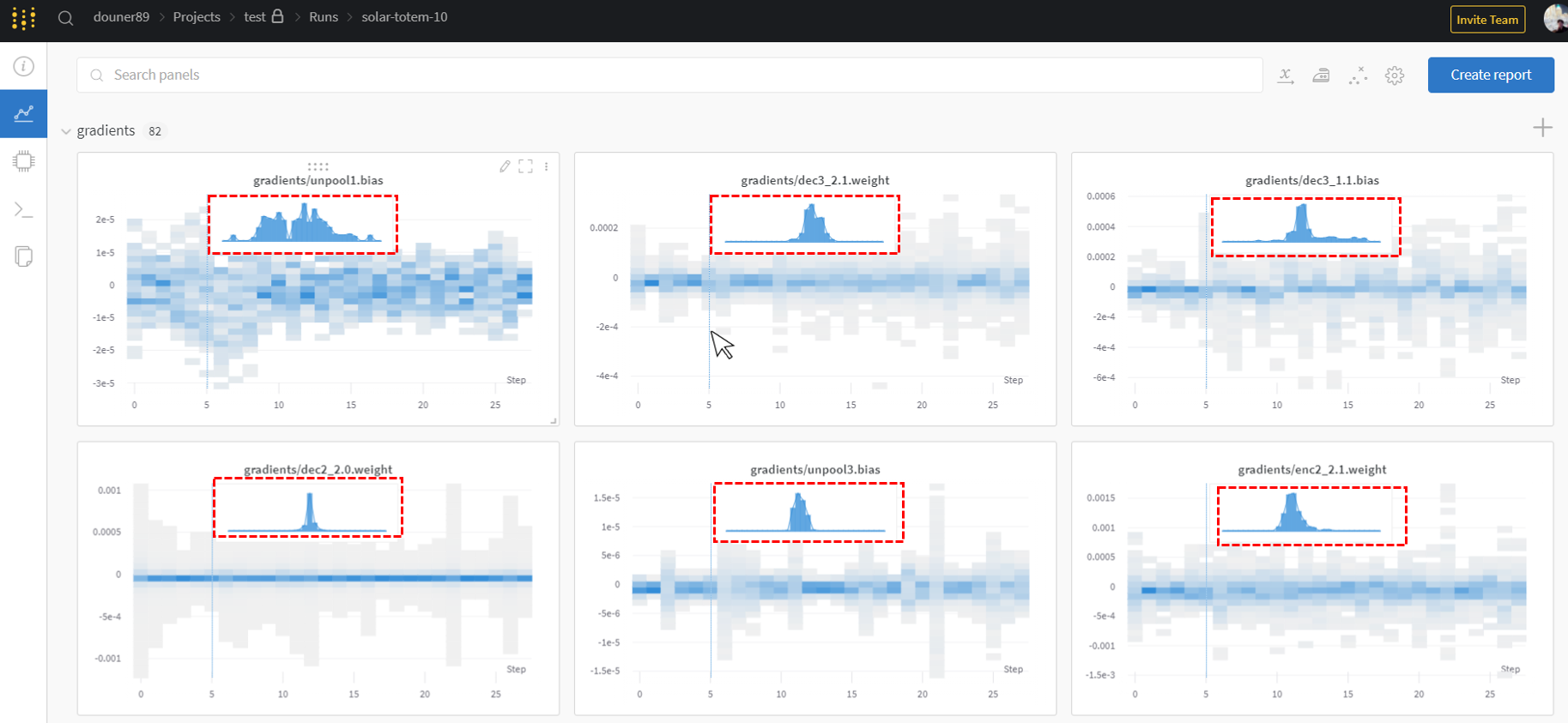 (↓↓↓ W&B를 이용해 exploding gradient, vanishing gradient를 보여주는 사례 ↓↓↓)