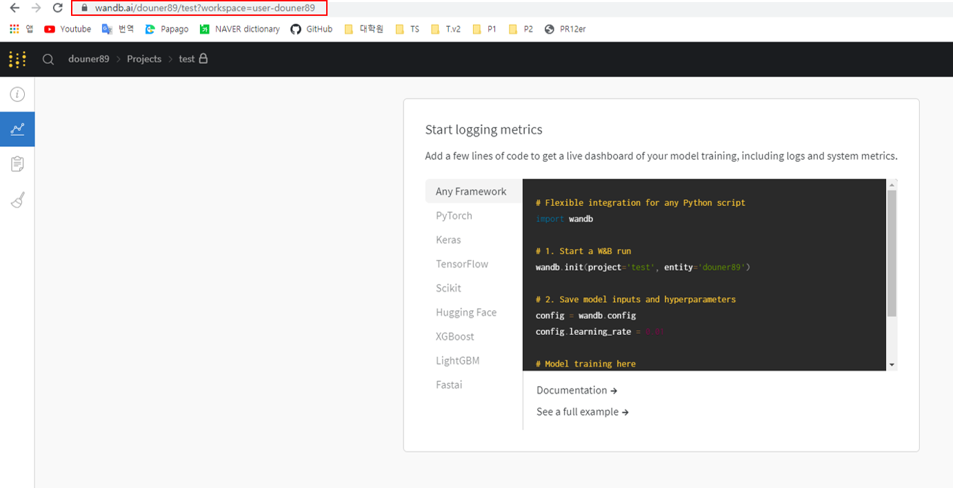 wandb.init(project='test', entity='douner89') #추가된 코드1
