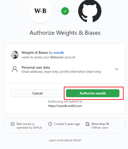 그리고 "Authorize wandb" 을 클릭해줍니다.
