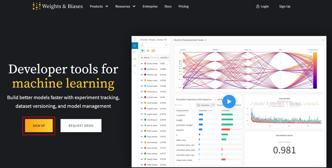 그럼 "Weight and Biases"에 회원 가입을 해보도록하겠습니다.