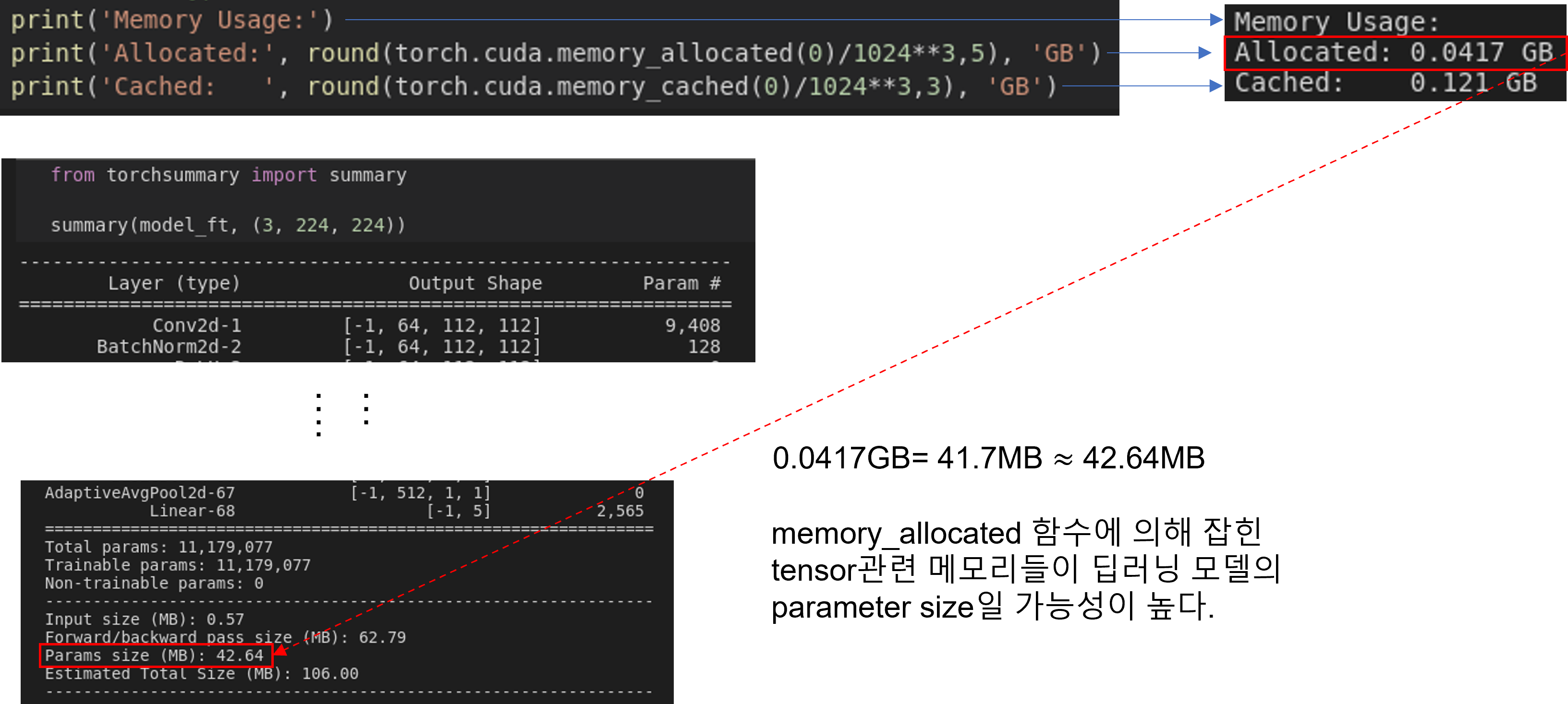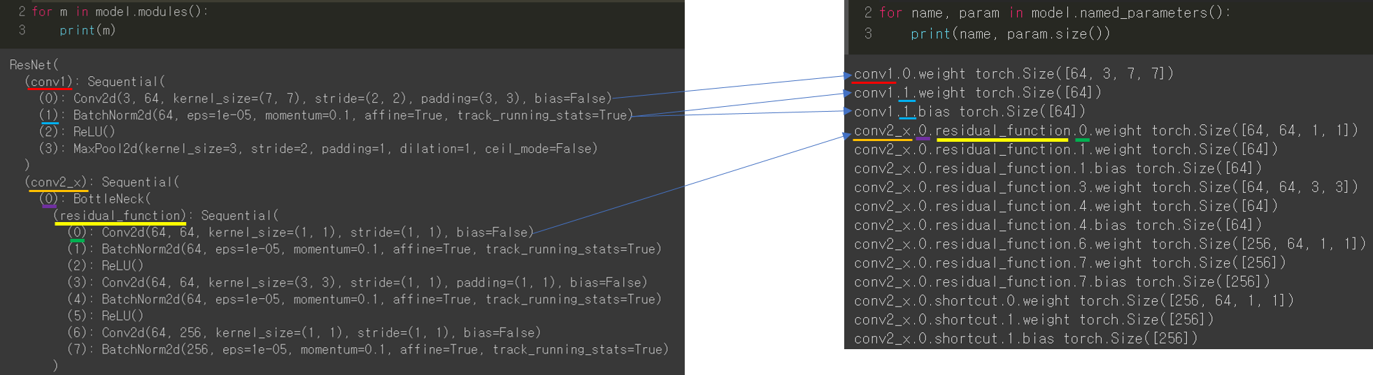 앞서 구현한 model의 변수명을 기반으로 해당 위치에 있는 layer에 전파되는 gradient 값을 확인해 볼 수 있습니다.