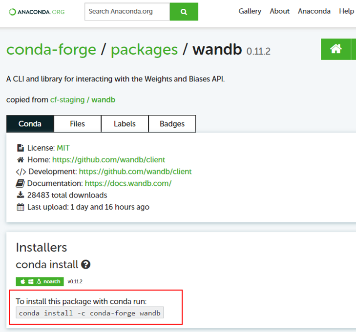 https://anaconda.org/conda-forge/wandb