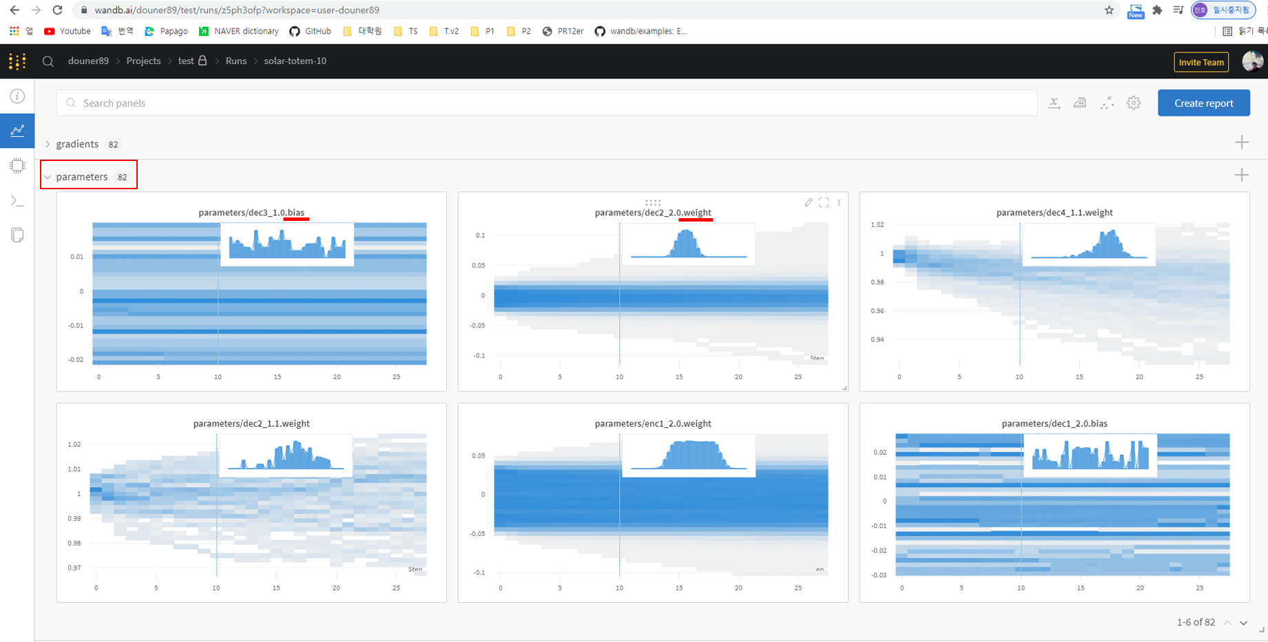 4-3. wandb.watch() 부분 visualization 하기 (Feat. parameters)