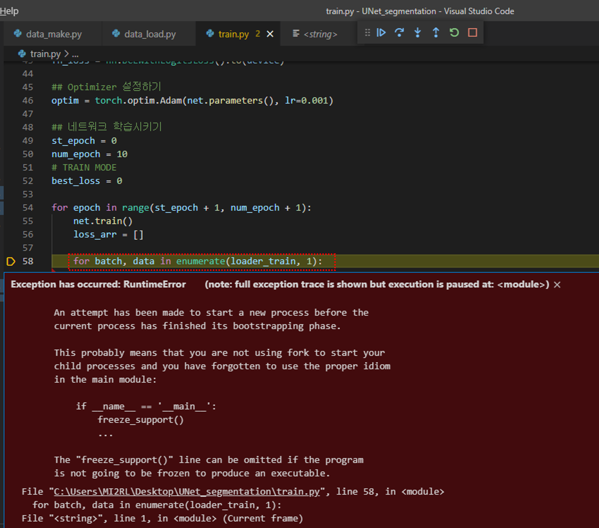 그리고 train_model 함수 부분에 먼저 두 개의 코드를 입력해줍니다.